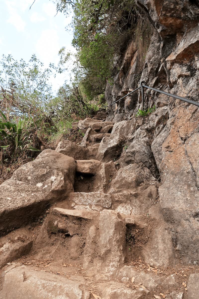 Um Zeit und Geld zu sparen, haben wir uns dazu entschlossen die Ruinen zu Fuß zu erreichen. Über eine staubige Straße verlässt man Aguas Calientes, zeigt sein Ticket am Check Point vor und dann geht es über Steinstufen durch einen Wald hinauf bis zum Eingang. Man hört die Papageien in den Bäumen und hat immer wieder eine sagenhafte Aussicht auf das Umland. Die Wanderung, für die man circa eineinhalb Stunden braucht, ist auf alle Fälle schaffbar, wenn man Zeit hat, fit ist und Wanderschuhe dabeihat. Einfach nicht abschrecken lassen!