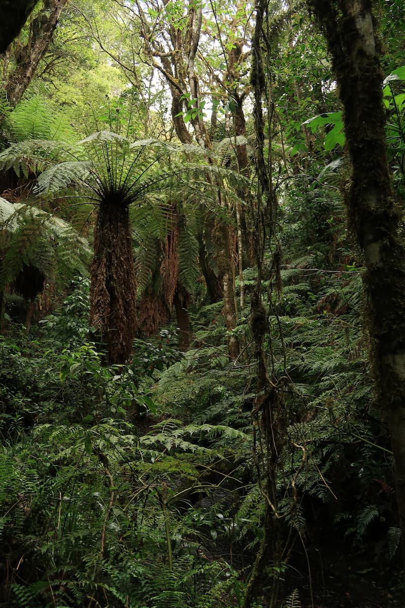 Der Weg führt auf schmalen Pfaden durch den dichten Nebel- und Farnwald. Die Wanderung ist technisch nicht schwierig, aber die Höhe und die schwüle Luft können anstrengend sein. Die Atmosphäre ist dicht und ruhig: feuchte Erde, tropisches Blattwerk, alles in unglaublich satten Grüntönen. Die Riesenfarne wirken wie Relikte aus der Urzeit.
